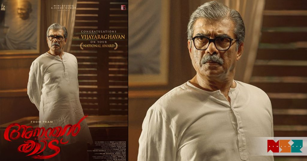 ‘പൂക്കാലം’ എന്ന ചിത്രത്തിലെ പ്രകടനത്തിന് മികച്ച സഹനടനുള്ള ദേശീയ ചലച്ചിത്ര പുരസ്കാരം നേടിയ നടൻ വിജയരാഘവന് ആദരവർപ്പിച്ച് ‘അനന്തൻ കാട്’ സിനിമയുടെ അണിയറപ്രവർത്തകർ. ചിത്രത്തിൽ അദ്ദേഹം അവതരിപ്പിക്കുന്ന കഥാപാത്രത്തിന്റെ പുതിയ പോസ്റ്റർ പുറത്തിറക്കിയാണ് ടീം ആശംസകൾ അറിയിച്ചത്. കറ കളഞ്ഞ രാഷ്ട്രീയക്കാരന്റെ ഗൗരവമേറിയ ഭാവത്തിലാണ് വിജയരാഘവൻ പോസ്റ്ററിൽ പ്രത്യക്ഷപ്പെടുന്നത്.