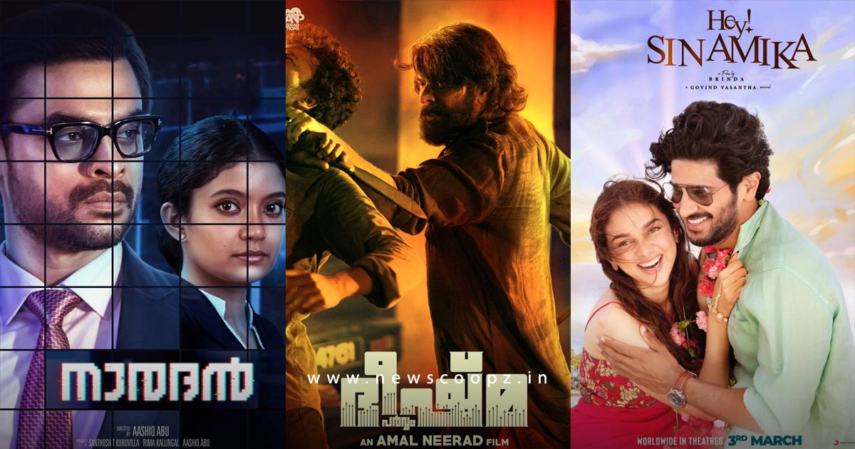 മലയാള സിനിമയിലെ മൂന്ന് പ്രധാന താരങ്ങളുടെ ചിത്രങ്ങൾ നാളെ (മാർച്ച് 3, വ്യാഴം) തീയേറ്ററുകളിൽ എത്തുന്നു. താരങ്ങളുടെ രണ്ട് മലയാള ചിത്രങ്ങളും ഒരു തമിഴ് ചിത്രവും ആണ് നാളെ റിലീസിന് ഒരുങ്ങുന്നത്. മെഗാസ്റ്റാർ മമ്മൂട്ടിയുടെ ഭീഷ്മ പർവ്വം, യുവതാരം ടോവിനോ തോമസിന്റെ നാരദൻ, യുവതാരം ദുൽഖർ സൽമാന്റെ ഹേ സിനാമിക എന്നിവ ആണ് ആ ചിത്രങ്ങൾ. ഇതിൽ ഹേ സിനാമിക തമിഴ് ചിത്രമാണ്.