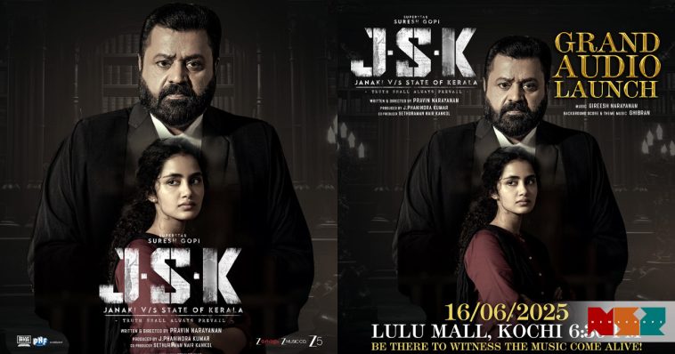 സുരേഷ് ഗോപി ചിത്രം ‘ജെ.എസ്.കെ’യുടെ ഓഡിയോ ലോഞ്ച് നാളെ കൊച്ചിയിൽ; 1 മില്യൺ കാഴ്ചക്കാരെ നേടി തീം സോങ് മുന്നേറുന്നു